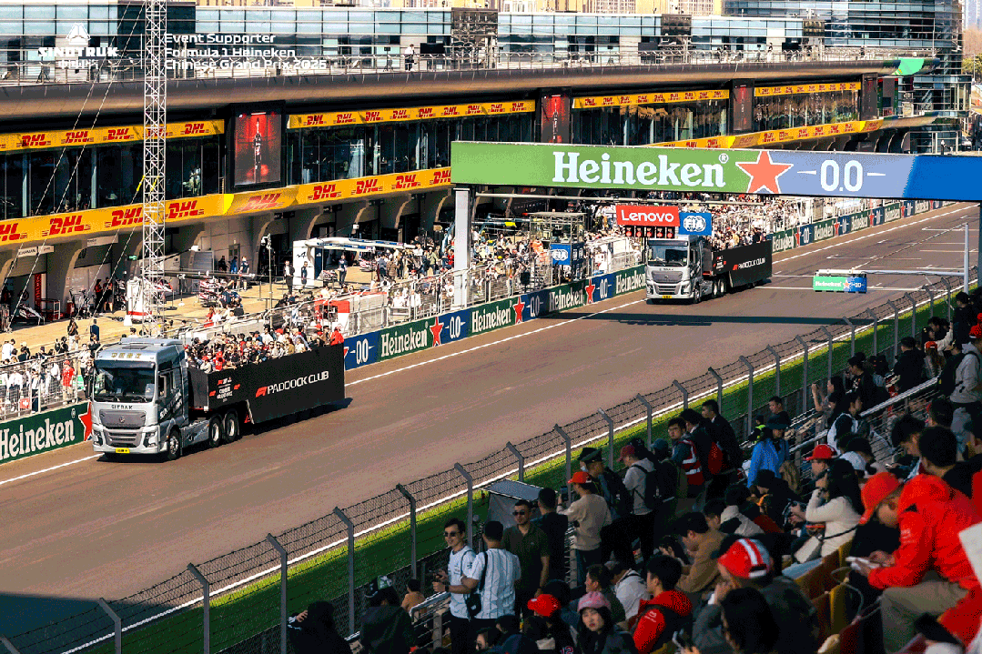 3月23日正赛日,中国重汽赛事涂装巡游车化身钢铁先锋,在全球顶尖F1车手的带领下开启赛道巡礼,与全球观众一同见证F1中国大奖赛最富张力的精彩时刻!中国重汽SITRAK以高端驰名全球,凭借其“高效、智能、可靠、舒适”的卓越性能,成为F1赛道中最靓丽的风景线。在这场跨越商用车与赛车领域的巡礼中,众多身价过亿的国际顶尖车手乘坐SITRAK,再次刷新了中国重汽品牌的世界级影响力!