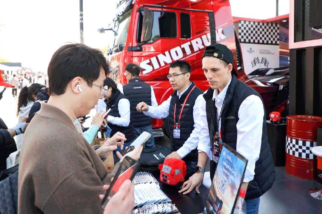 在F1中国大奖赛商贸区核心展位,全球首发的中国重汽SITRAK赛道版重卡成为全场最耀眼的主角,这辆承载着中国力量的钢铁巨兽,以“霸世钢躯,机械战魂”为设计理念,将F1赛车的空气动力学精髓融入重卡工业设计,成为力量与锋芒的凝聚点、激情与速度的诠释者。棱角分明的车头如利刃劈风,车身侧面导流叶片与碳纤维扰流板大幅优化风阻系数,赋予其“超性能野兽”的极致速度基因。现场嘉宾惊叹:“这完全打破了商用车设计的传统框架,简直是从未来驶来的机械艺术品!”