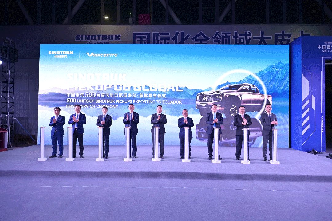 3月20日晚,山东重工旗下的中国重汽集团500台皮卡出口南美首批交车仪式在济南章丘举行,中国重汽轻型汽车各级领导、行业媒体、南美地区客户代表跨越时空齐聚一堂,见证首批100台皮卡正式驶向大洋彼岸的赤道之国——厄瓜多尔。该笔订单是中国重汽轻型汽车推行国际化战略的里程碑成果,标志着搏胜皮卡正式走向海外市场,也标志着中国重汽作为商用车领军企业的地位得到稳固和加强。