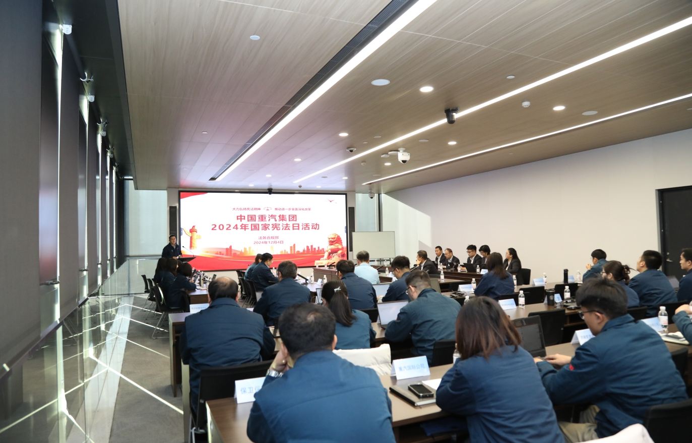 2024年12月4日,中国重汽围绕“大力弘扬宪法精神,推动进一步全面深化改革”的主题,组织开展了“宪法宣传周”专题法治讲座。山东重工相关部门、中国重汽法务合规业务有关负责人员,共计140余人通过线上线下的方式参加活动。