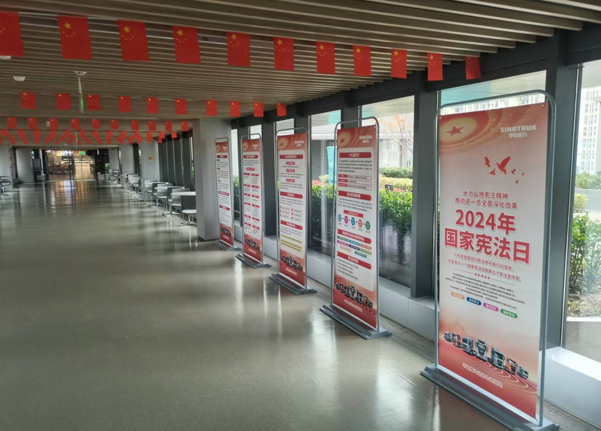 此外,中国重汽还在办公场所还设置了宣传展板,以普及宪法知识,宣传宪法精神,进一步营造浓厚的法治氛围。