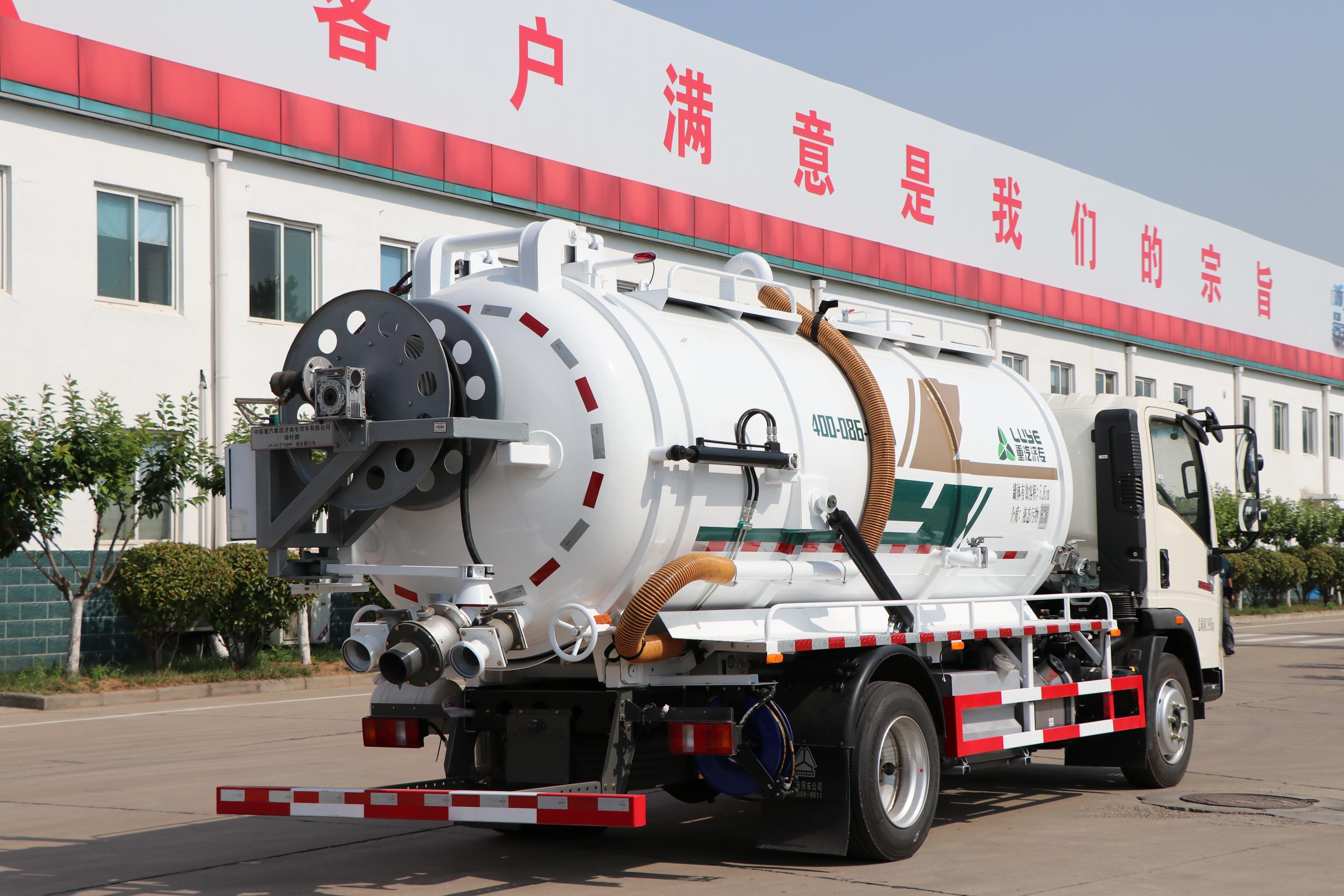 整车具备吸污+疏通两用功能。公司自主开发的罐车总装流水线,能够保证装配质量和装配的一致性,整体打砂、喷涂、烘烤工艺,具有抗老化性、耐腐蚀性能。罐体采用有限元分析方法优化设计,并通过严格的可靠性试验,具有前顶缸举升系统,后门液压开启系统,手动锁紧功能。另外,高压水路系统配置60米高压胶管实现疏通功能,另外配置15米洗车卷盘。该车主要用于装运工业有害废液、城市环卫污液及建筑施工污泥等液态物质,疏通下水管道;可自吸自排,工作速度快,容量大,运输方便,特别适用于下水道内的淤积物的疏通、抽吸、装运和排卸。